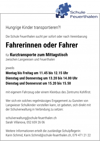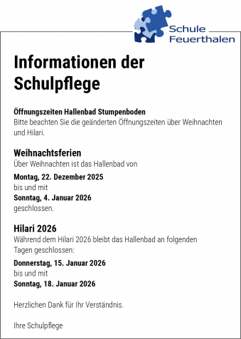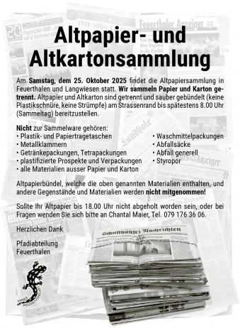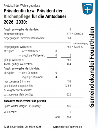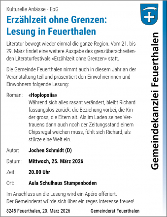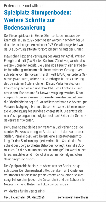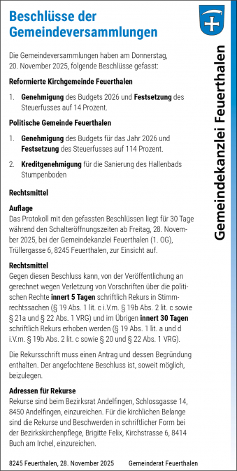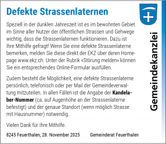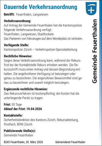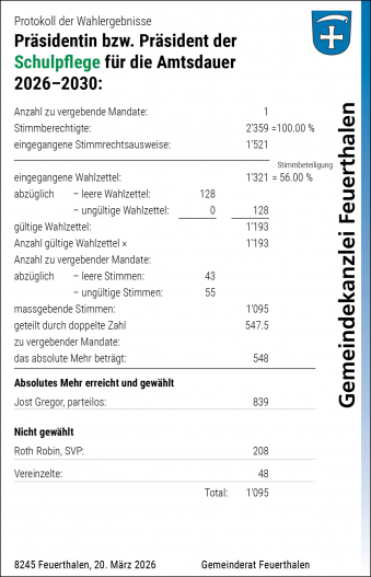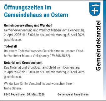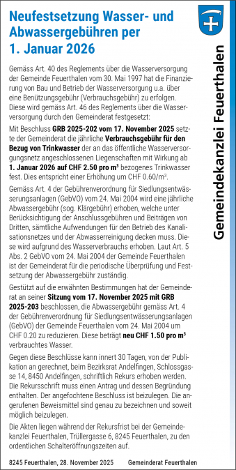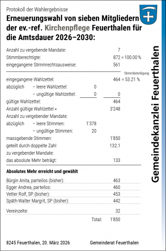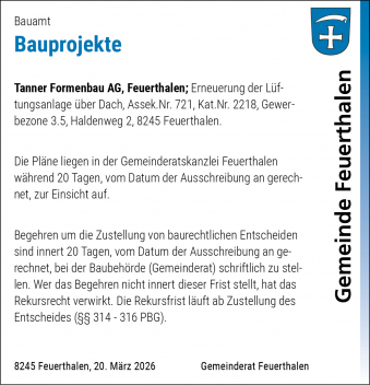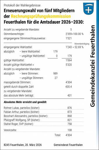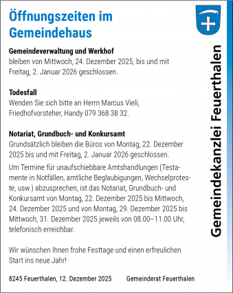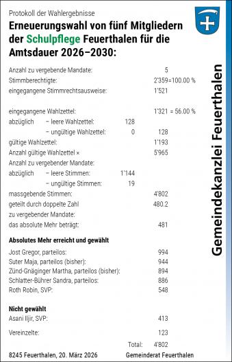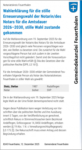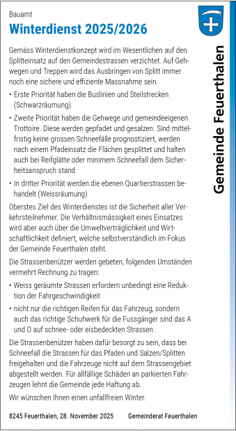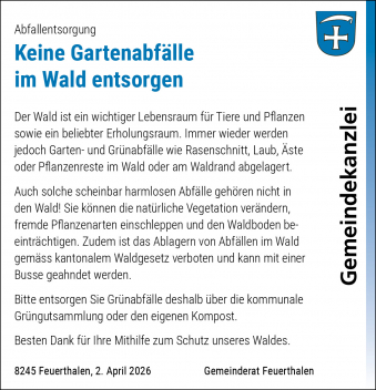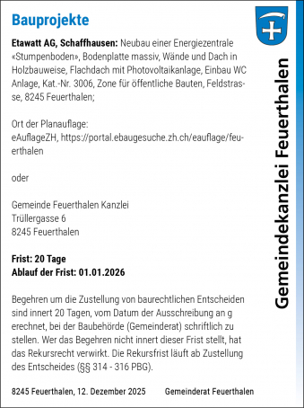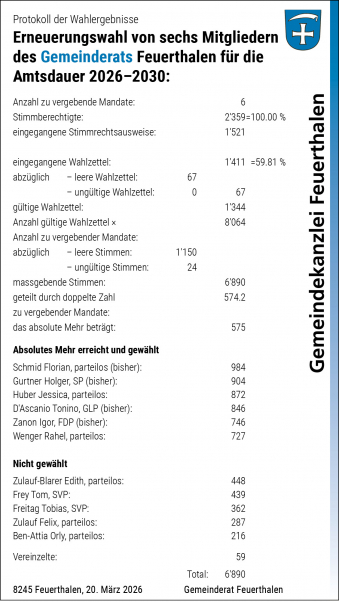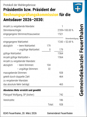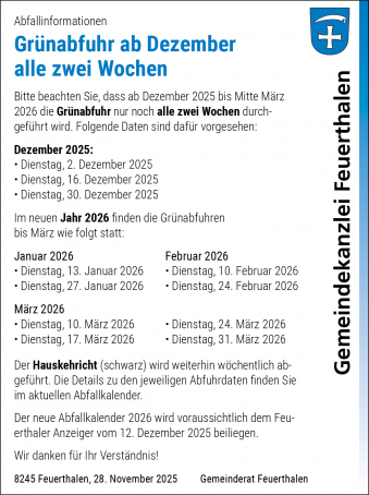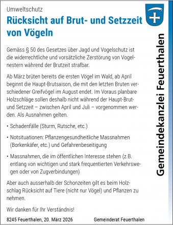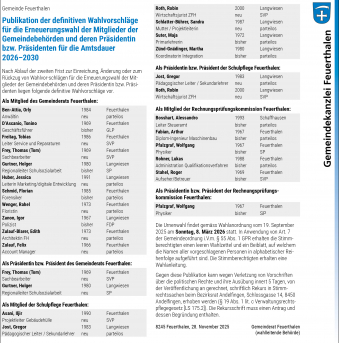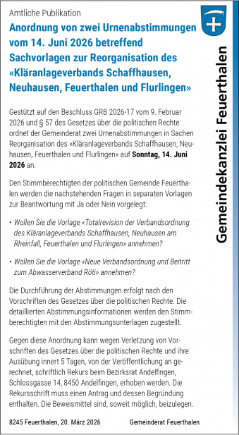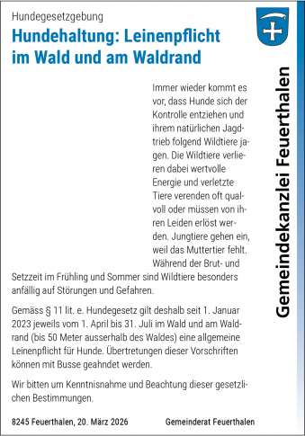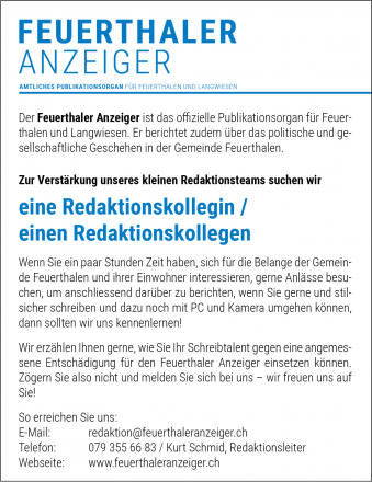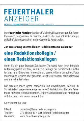 Mit dem Feuerthaler Anzeiger werden die amtlichen Publikationen in der Gemeinde flächendeckend veröffentlicht, die Ereignisse innerhalb und im Zusammenhang mit der Gemeinde festgehalten.